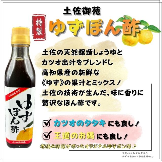 王道のゆずポン酢をはじめ、鶏ガラぽん酢、生姜ぽん酢、ガーリックポン酢など、