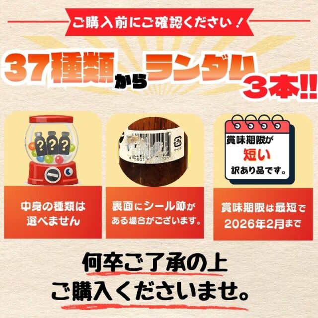 個性豊かな37種類の中からランダムで厳選した3本をお届けします。